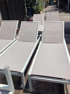 Ghế hồ bơi bị rách lưới, bạc màu, đức chỉ,bung chỉ hoạt bị trùng , ...